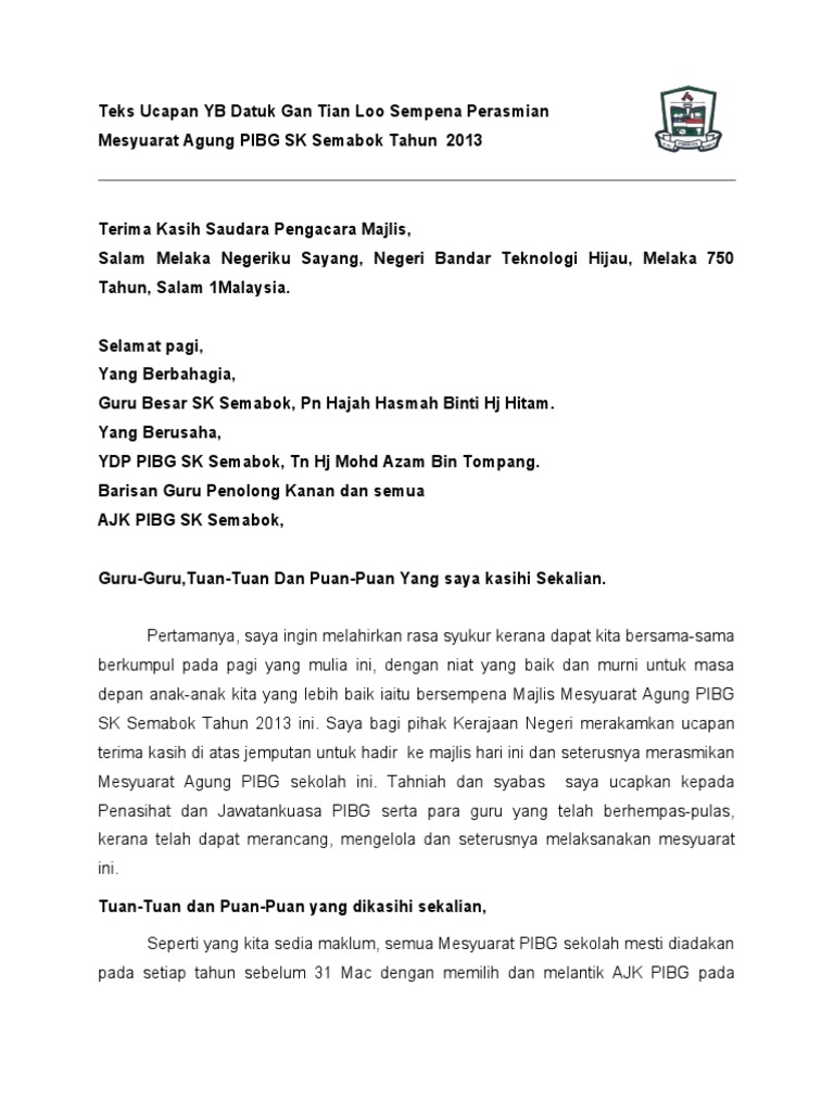 Teks Ucapan Perasmian Mesyuarat Agung Pibg Pdf