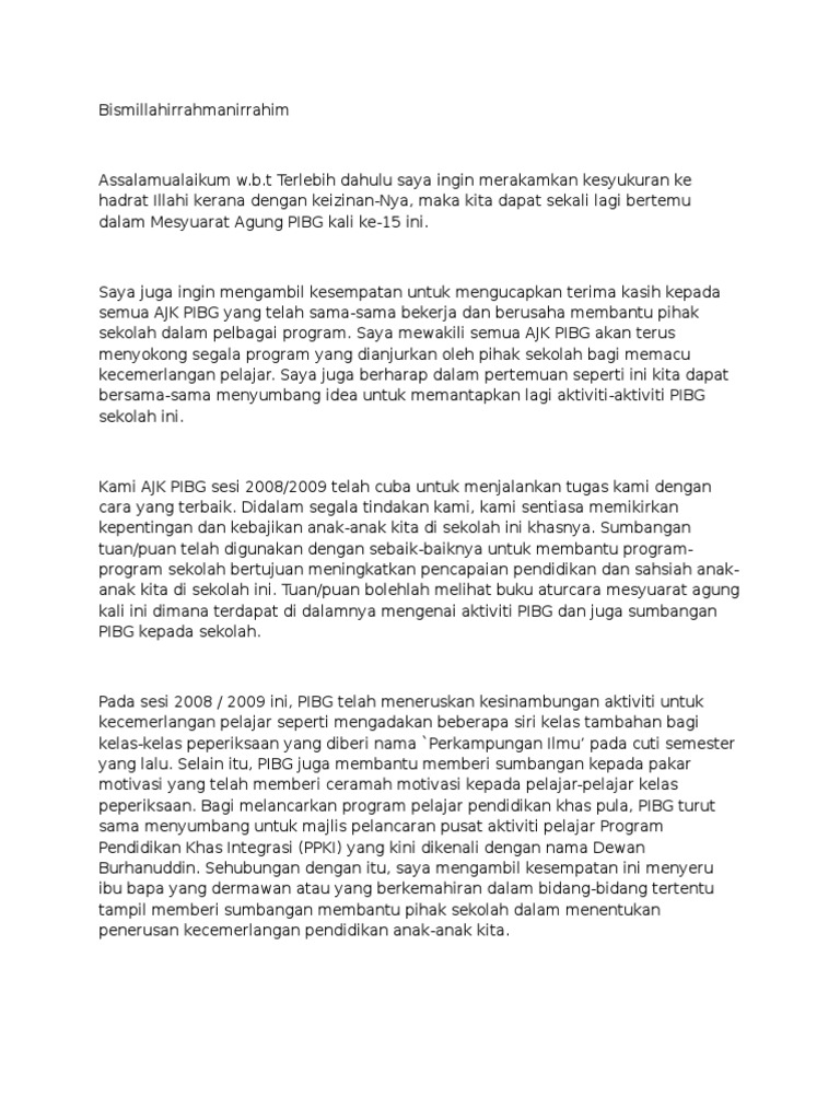 Teks Ucapan Ydp Pibg Mesyuarat Agung Pibg Pdf